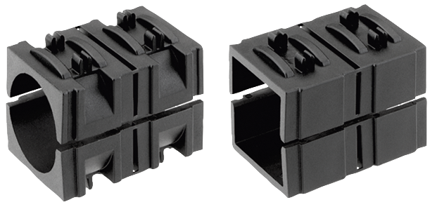 Pomocí redukčních pouzder je možné svírat trubky menších průměrů nebo změnit čvercový profil na kruhový.