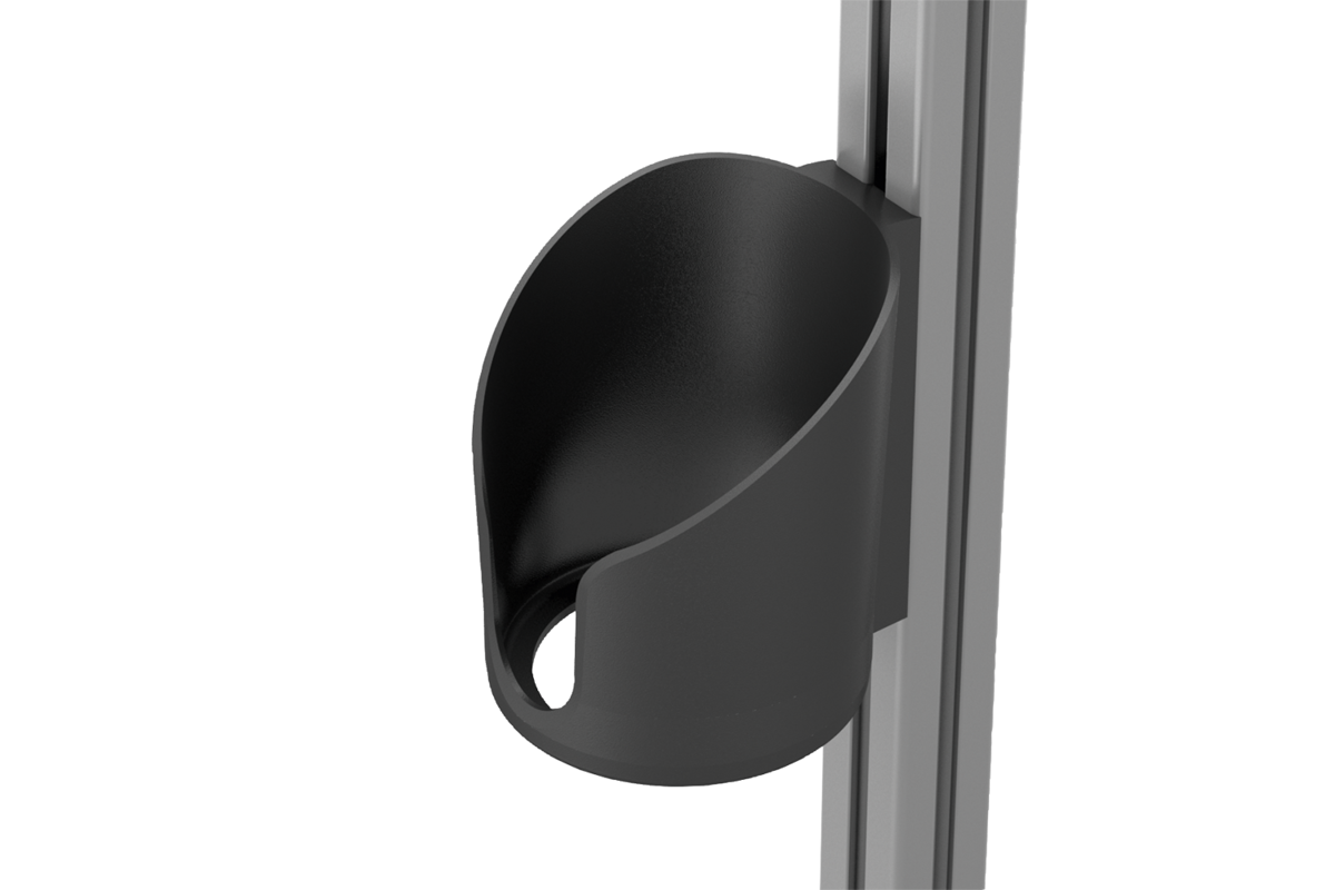 Držáky pohárků se připevňují pomocí zápustného šroubu M5 (K0708) a vložky do drážky (K1026 nebo K1023) na hliníkový profil (typ I a typ B).