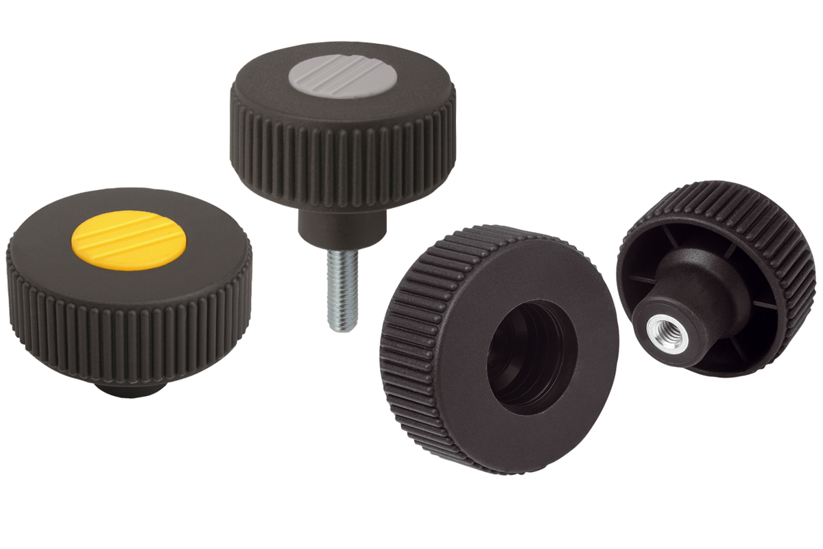 Rýhovaná ovládací kola, provedení K, se závitovým pouzdrem, s krytkou