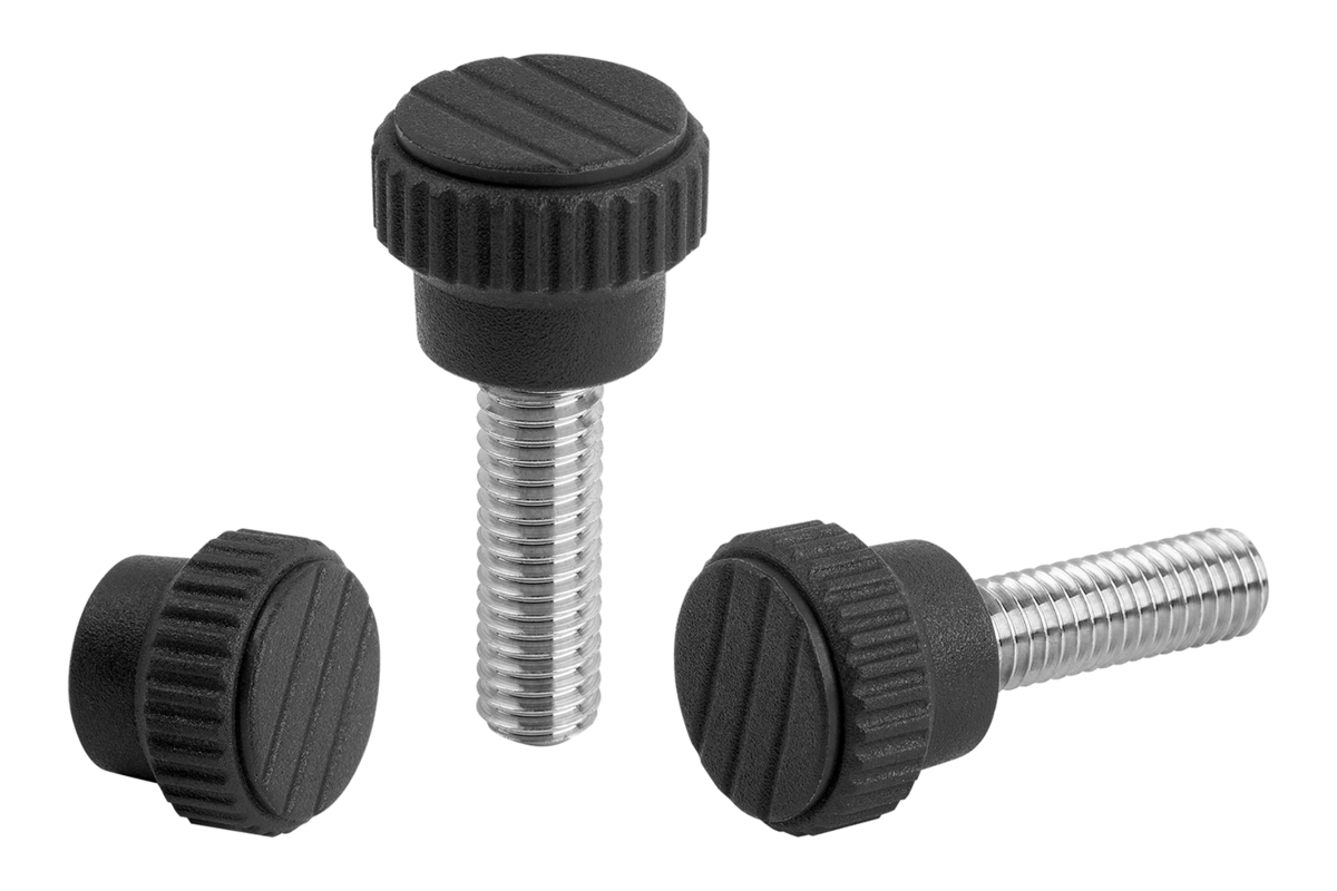 Rýhované ovládací knoflíky z plastu detektovatelného jako kovy, s vnějším závitem