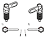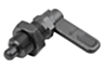 Aretační čepy ovládané páčkou se užívají tam, kde je třeba zabránit změně aretační polohy působením příčných sil. Otočením závory o 180° dojde k zatažení aretačního kolíku, čímž lze změnit aretační polohu. Zaskakovací vrub způsobí, že závora v této poloze drží a aretační kolík tak zůstane zatažený.