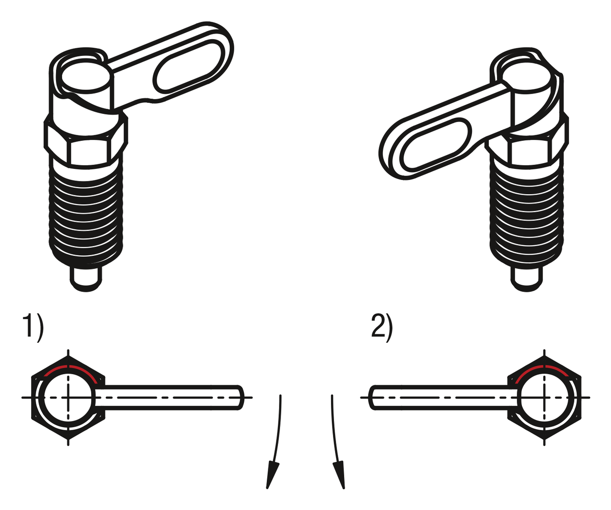 Díky 180° dorazu se zamezí přeskočení zářezu rastru a tím zabrání opětovnému vysunutí aretačního kolíku.