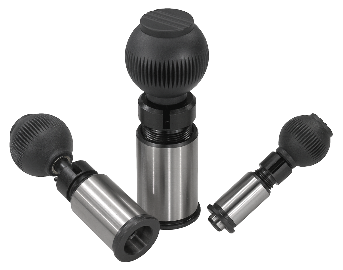 Přesné aretační čepy z oceli, s plastovou kulovou hlavicí a válcovým aretačním čepem