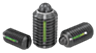 Pouzdra s odpruženou kuličkou, s drážkou, s tlačným kolíkem, z oceli, standardní síla pružiny, se závitovou pojistkou