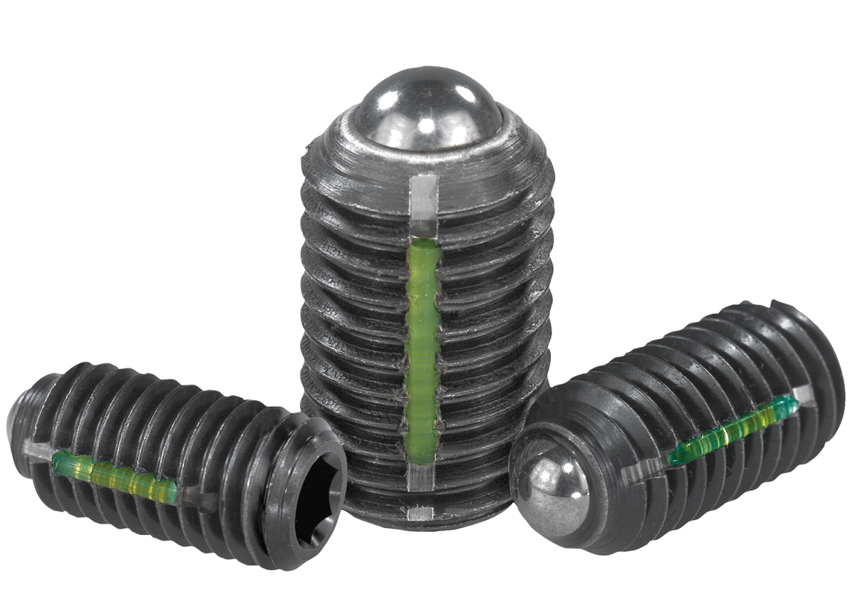 Pouzdra s odpruženou kuličkou, s vnitřním šestihranem, z oceli, standardní síla pružiny, se závitovou pojistkou