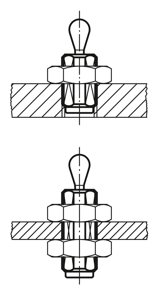 Pružné boční opěrky se závitovým pouzdrem je možné individuálně nastavit na upínaný díl. Závitové pouzdro se hodí pro našroubování do tenkých plechů, a to proto, že ho můžeme upevnit jednou nebo dvěma maticemi.