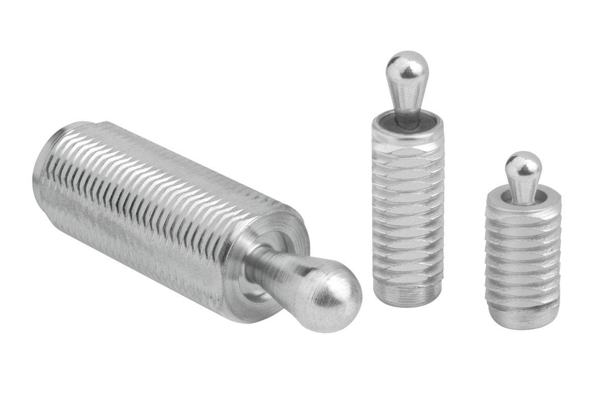 Pružné boční opěrky se závitovým pouzdrem je možné individuálně nastavit na upínaný díl. Závitové pouzdro se hodí pro našroubování do tenkých plechů, a to proto, že ho můžeme upevnit jednou nebo dvěma maticemi.