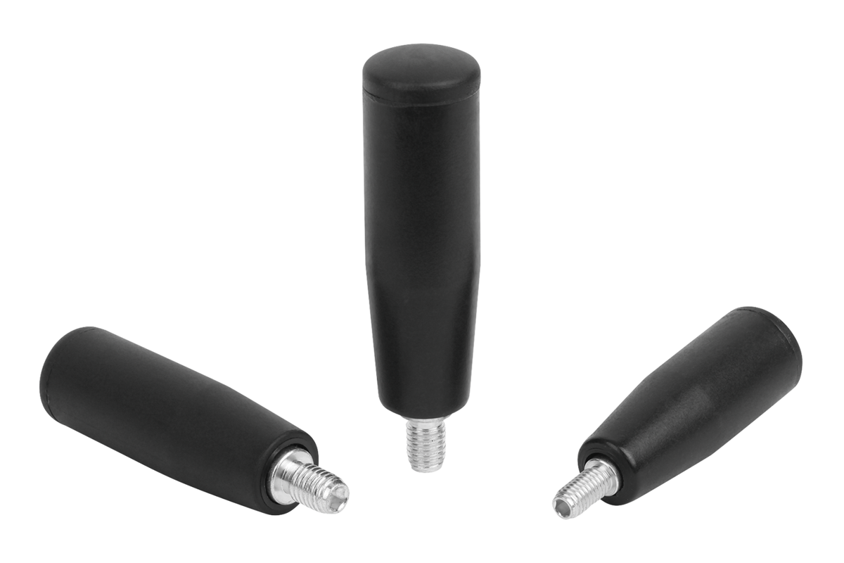 Válcové rukojeti se šroubují například k ručním ovládacím kolům a ovládacím klikám.