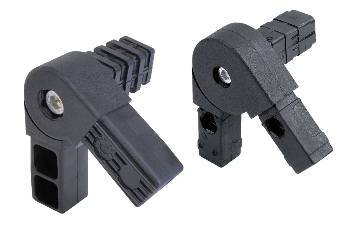 Zasouvací spojovací díly se jednoduše zastrčí do odpovídajícího čtyřhranného profilu. Demontovatelné a vícenásobně použitelné. V uvedeném rozmezí plynule nastavitelné. Odbočka je otočná kolem své vlastní osy.