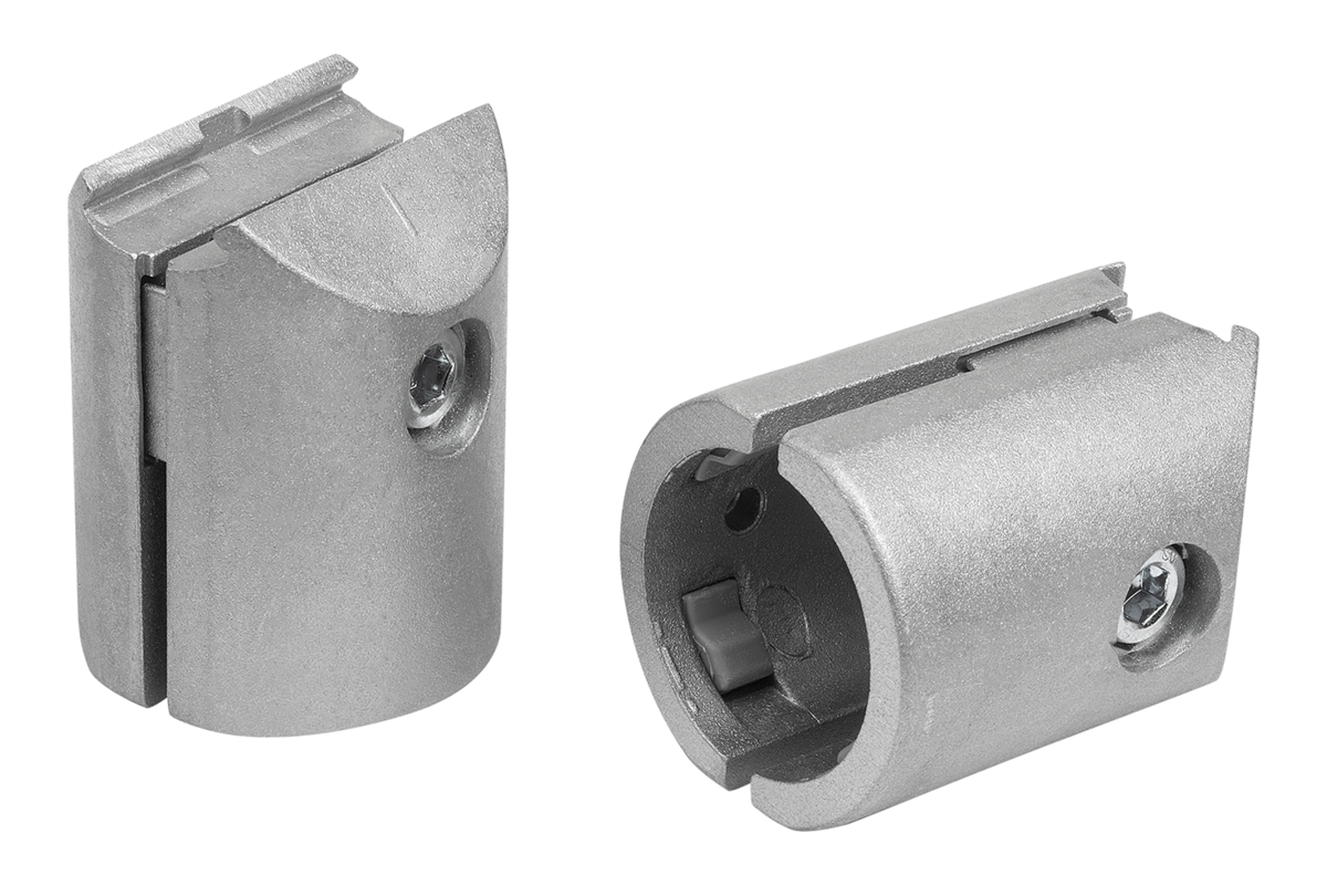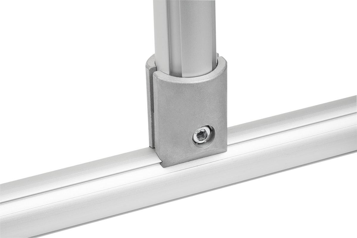 Pro pravoúhlé spoje. T-spojka má integrovanou odolnou pojistku proti pootočení. Zajišťuje přesné a trvalé vyrovnání profilových trubek Ø30. Pojistky proti pootočení lze v případě potřeby odstranit pomocí šroubováku. To je nutné pro upevnění kulatých trubek Ø30 v T-spojce.