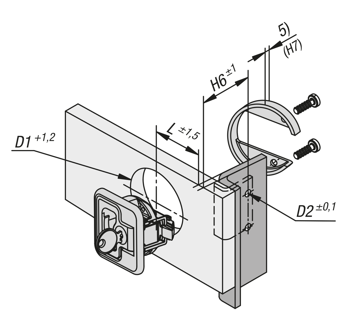 Zamykatelné západkové uzávěry se dodávají vždy se 2 klíči. Šrouby (M5) pro montážní úhelník nejsou součástí dodávky.