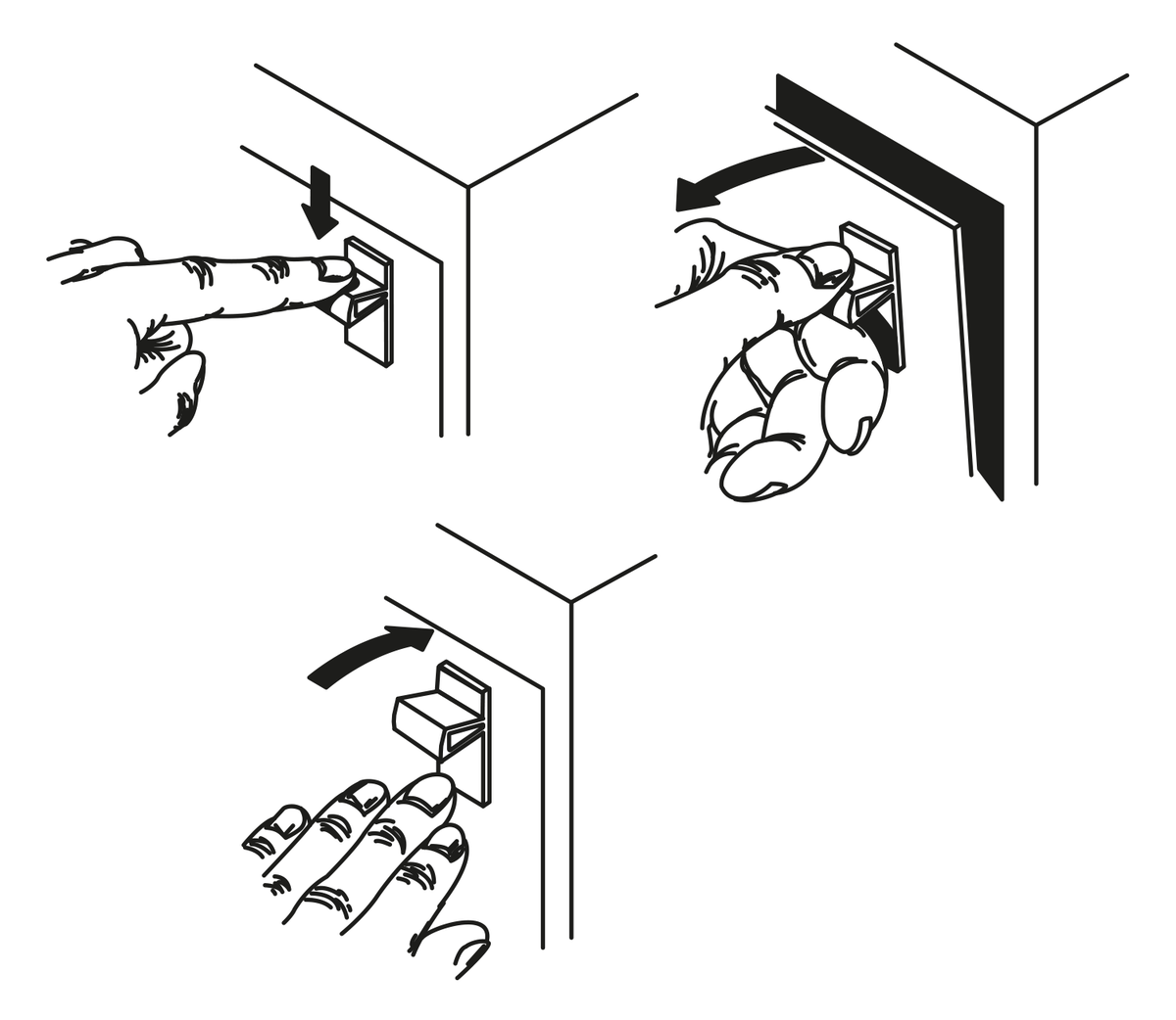 Posunutím rukojeti se zámek uvede do otevřené polohy a dveře lze otevřít. Zamykání se automaticky zajistí přitisknutím dveří pomocí pružiny.
