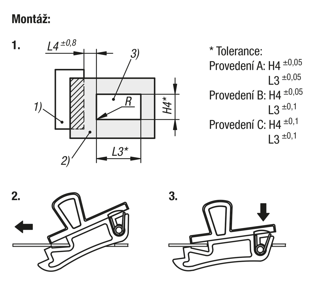 1. Montážní výřez bez otřepů zhotovte podle náčrtku.