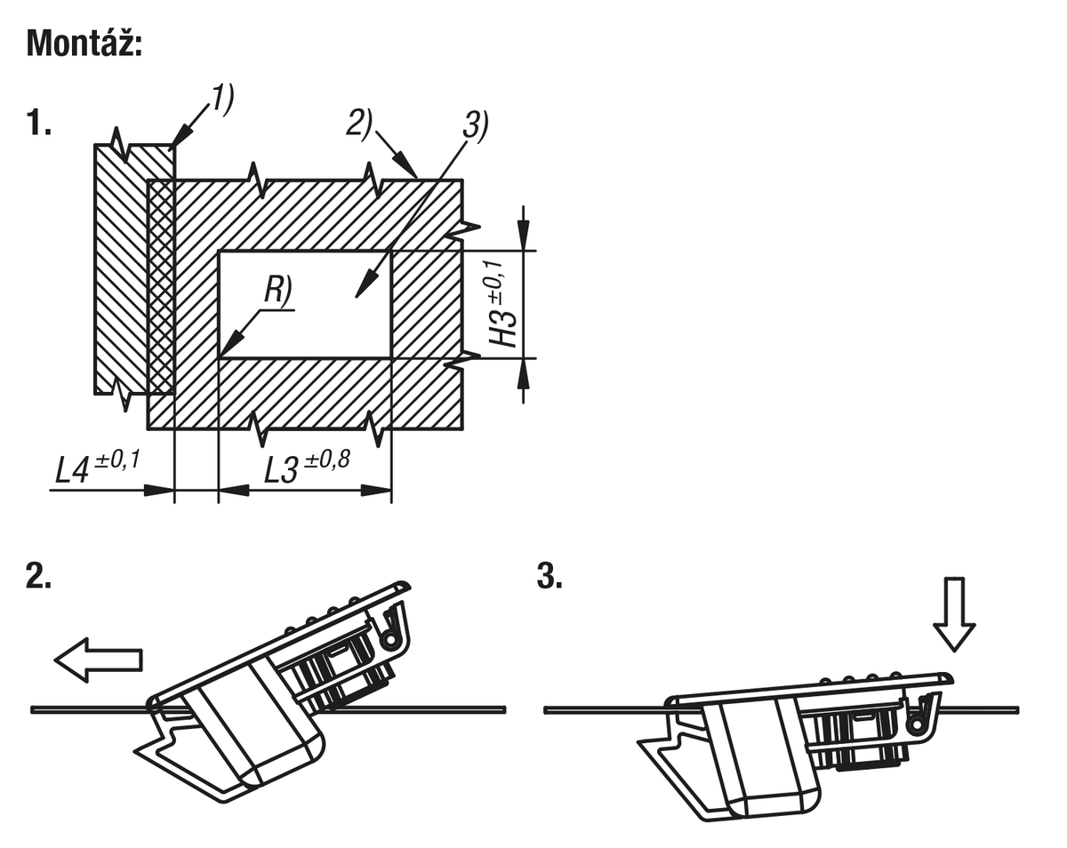 1. Montážní výřez bez otřepů zhotovte podle náčrtku.
