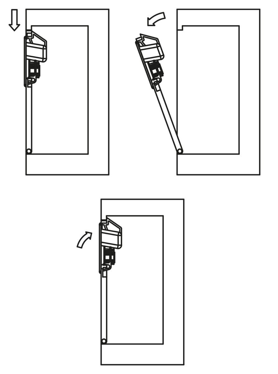 Posunutím rukojeti se zámek uvede do otevřené polohy a dveře lze otevřít. Zamykání se automaticky zajistí přitisknutím dveří pomocí pružiny.