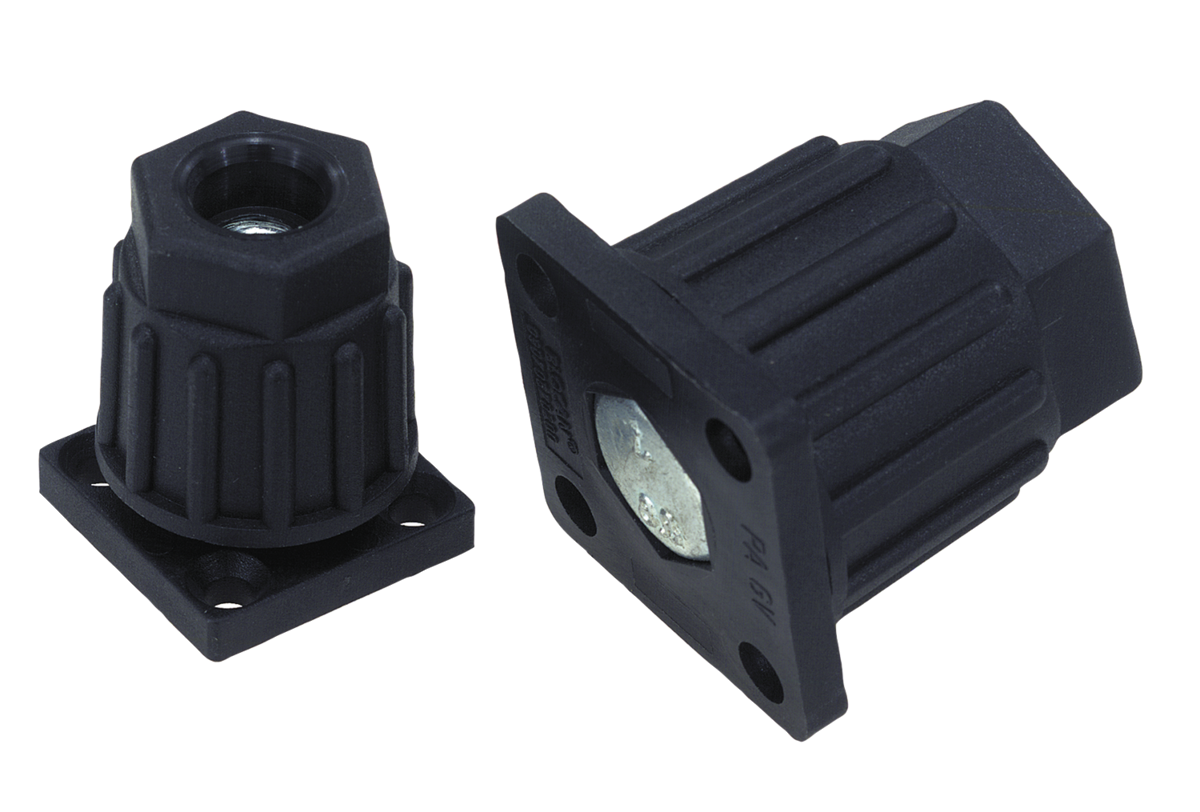 Díky ploché koncové ploše a zapuštěnému šestihrannému šroubu se tyto přístrojové nožky hodí zvláště pro montáž na rovné plochy.