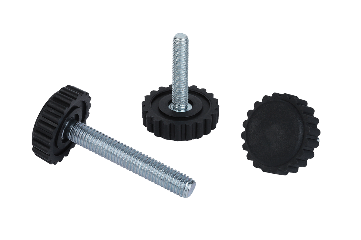 Stavitelná nožka s rýhovanou dosedací plochou. Tuhé provedení.