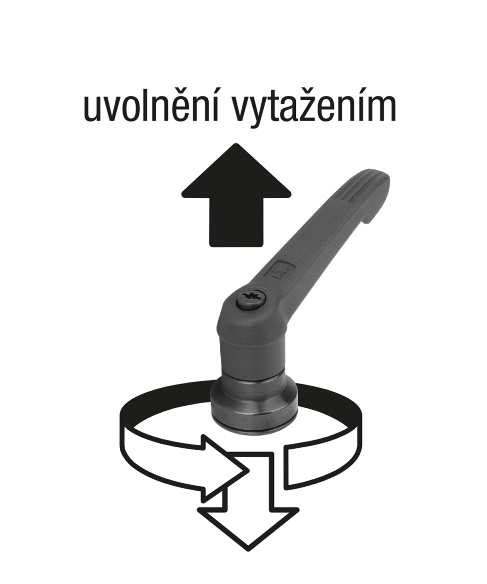 Ovládací páka je ozubeným věncem v neovládaném stavu zaklesnuta do ozubené vložky, a tím lze závit upevnit nebo povolit. Nadzvednutím ovládacího úchytu ji lze přemístit do jiné polohy a silou pružiny opět zaklesnout do ozubeného věnce.