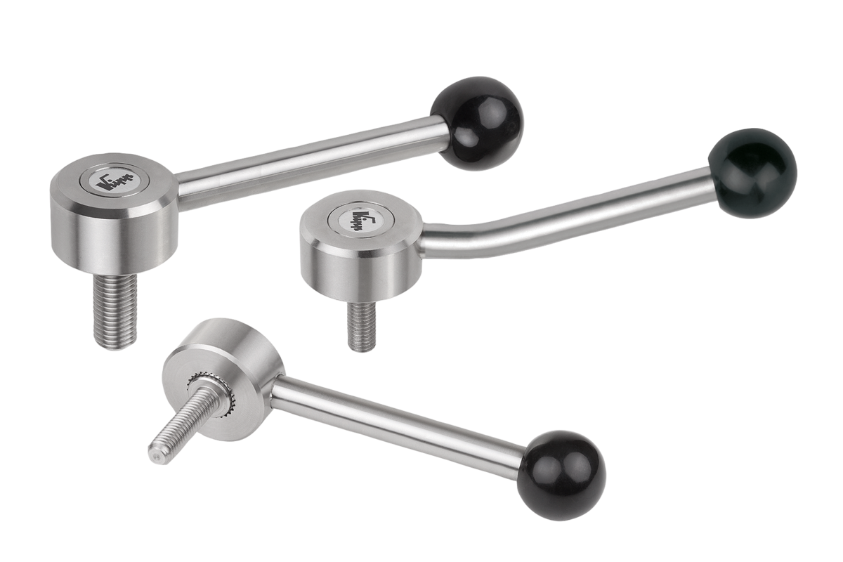 Ploché upínací páky z nerezové oceli, s vnějším závitem, 15 stupňů