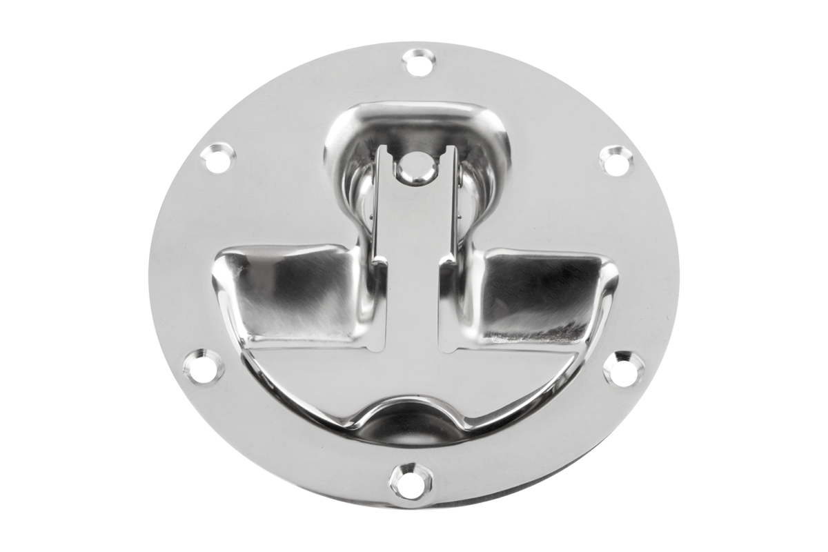 Sklopná madla z ušlechtilé oceli s malou vestavnou hloubkou. Pro podlahové a montážní desky nebo zásuvky. S vratnou pružinou. Po použití se madlo samočinně vrátí do klidové polohy.