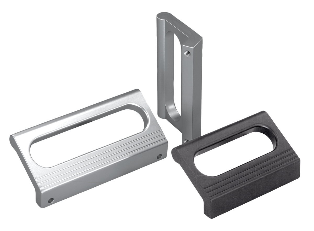 Profilovaná madla jsou dodávána s vnitřním závitem M6 nebo s průchozím otvorem pro šroub M5 pro boční montáž.
