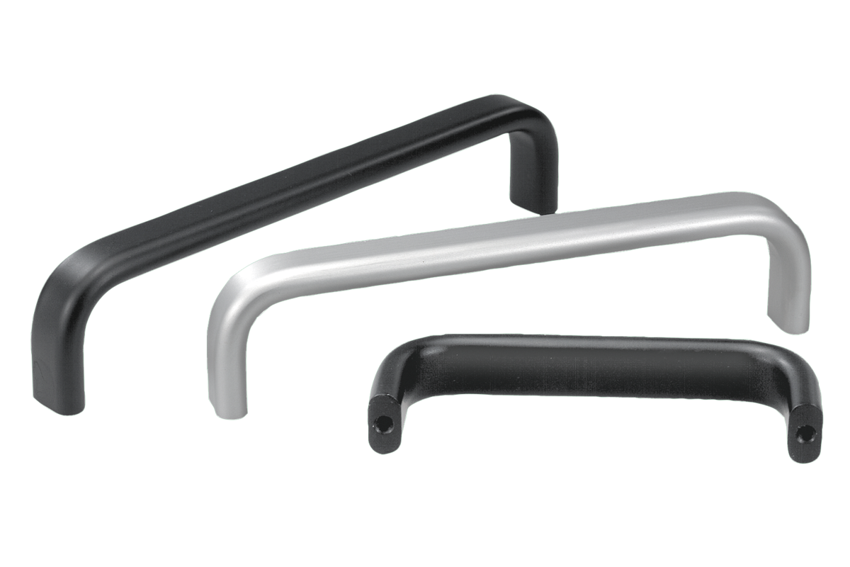 Elegantní třmenová madla z plochého hliníkového profilu jsou zvláště vhodná ke strojům, přístrojům, zařízením atd.
