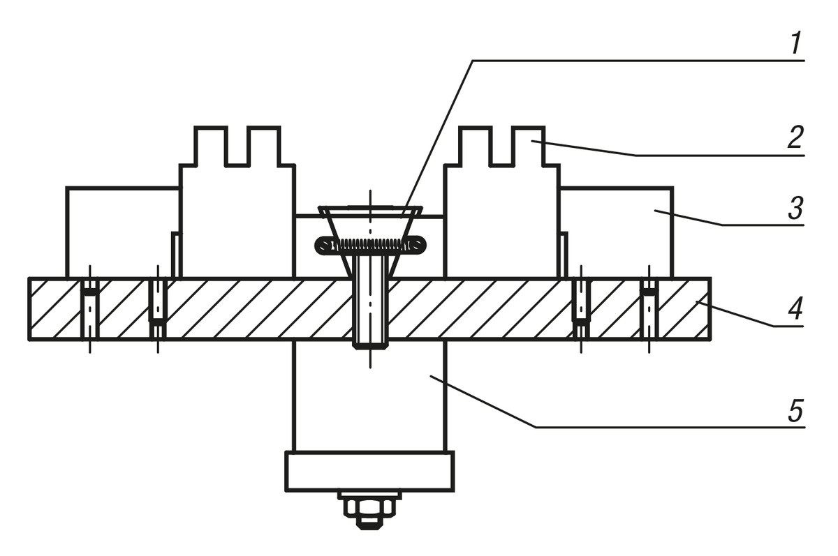 Dle volby lze klínové upínače připevnit šroubem nebo do T-drážky. Dotažením upínacího šroubu se oba upínací segmenty pohybují směrem ven a tlačí obrobek k pevným dorazům přípravku.