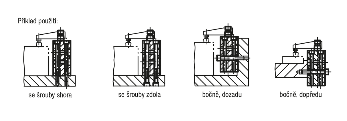 Včetně šroubu a pružné podložky k upevnění upínacích ramen, které lze dodat jako příslušenství.