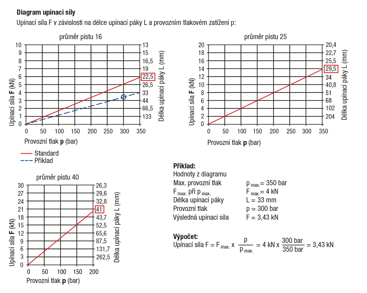 - Max. provozní tlak pro průměr pístu 16 a 25: 350 bar.
