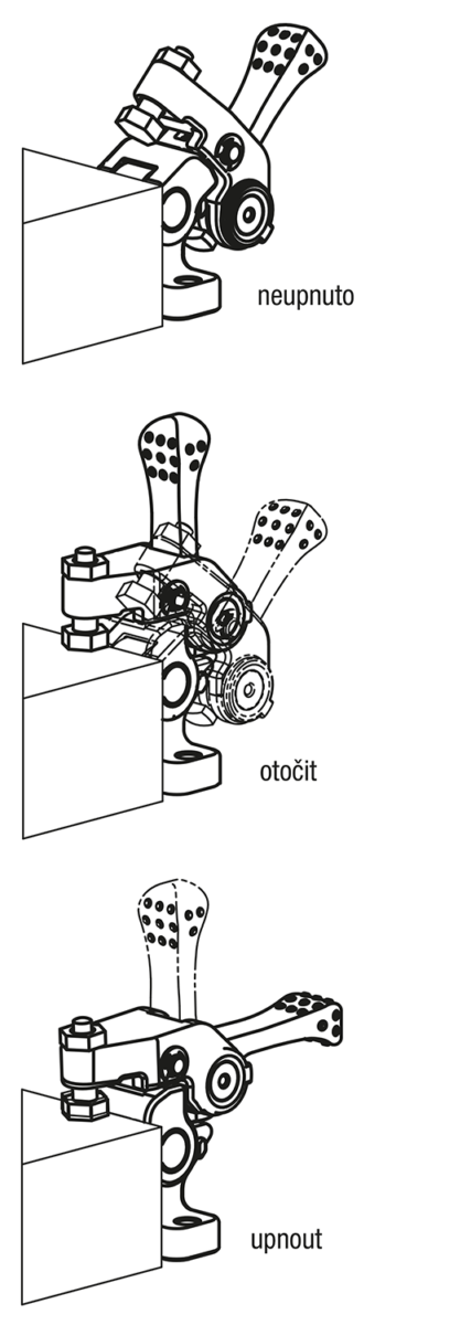 Otočné upínače se používají převážně tam, kde upínací body pro vkládání a vyjímání obrobků musejí zůstat volné.