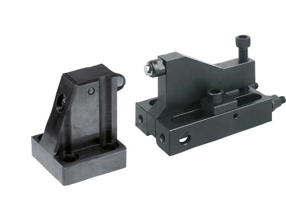 Tato konstrukční skupina skládající se z přestavitelného přítlačného upínače a stahovacího přidržovače slouží k upínání a přidržování v jediné operaci. Upínací síla se díky stahovacímu přidržovači promění na sílu stahovací a zaručí tak účinné přitlačení obrobku. Přítlačný upínač je vybaven 2 závitovými kolíky DIN 913, které zabraňují zpětné vyklouznutí při upínání.