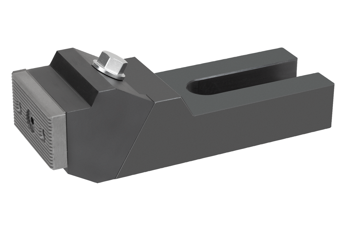 Upínací čelisti lze použít oboustranně. Hladká strana pro opracované obrobky, vroubkovaná strana pro surové upínací plochy. K upevnění stabilní upínací čelisti na strojní stůl lze použít dva upínací šrouby. V závislosti na šířce drážky jsou upevňovací šrouby vhodné pro T-drážky K0698 a K0699. Je třeba je objednat samostatně.