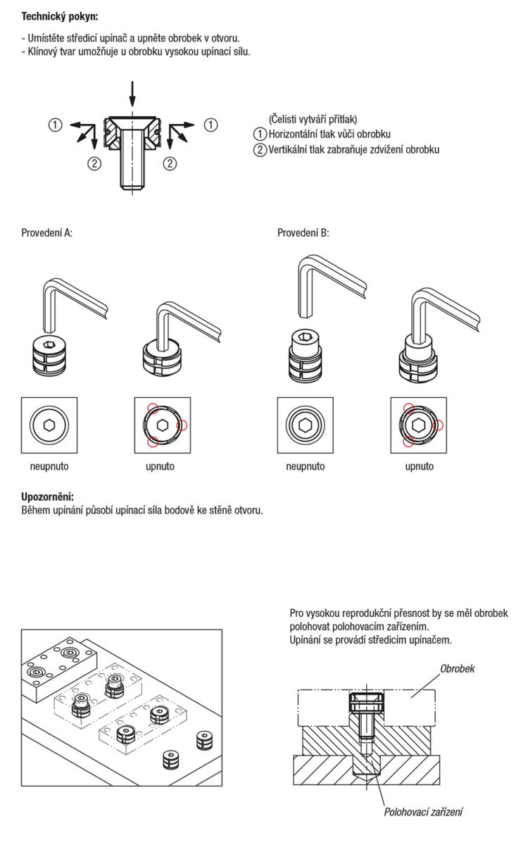 Díky klínovým plochám se dosahuje velkých upínacích sil.