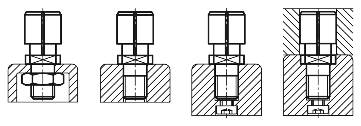 Provedení B: pro průběžné otvory nebo slepé otvory.