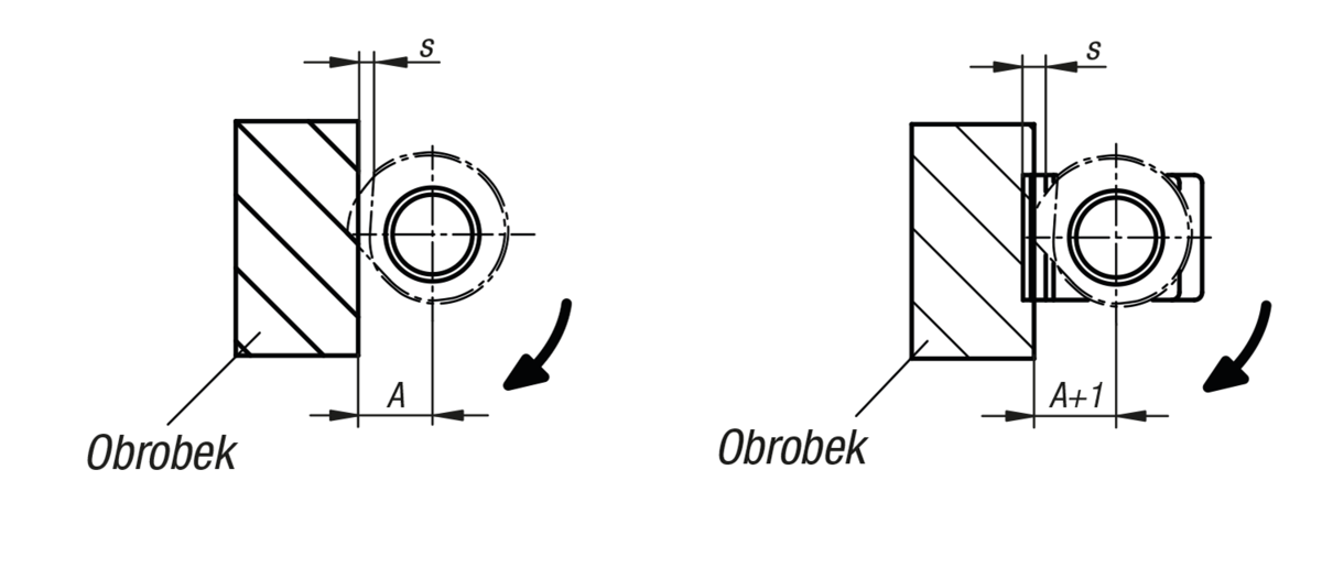 Rozměr A se vztahuje na vzdálenost od obrobku ke středu závitu (upínací šroub).