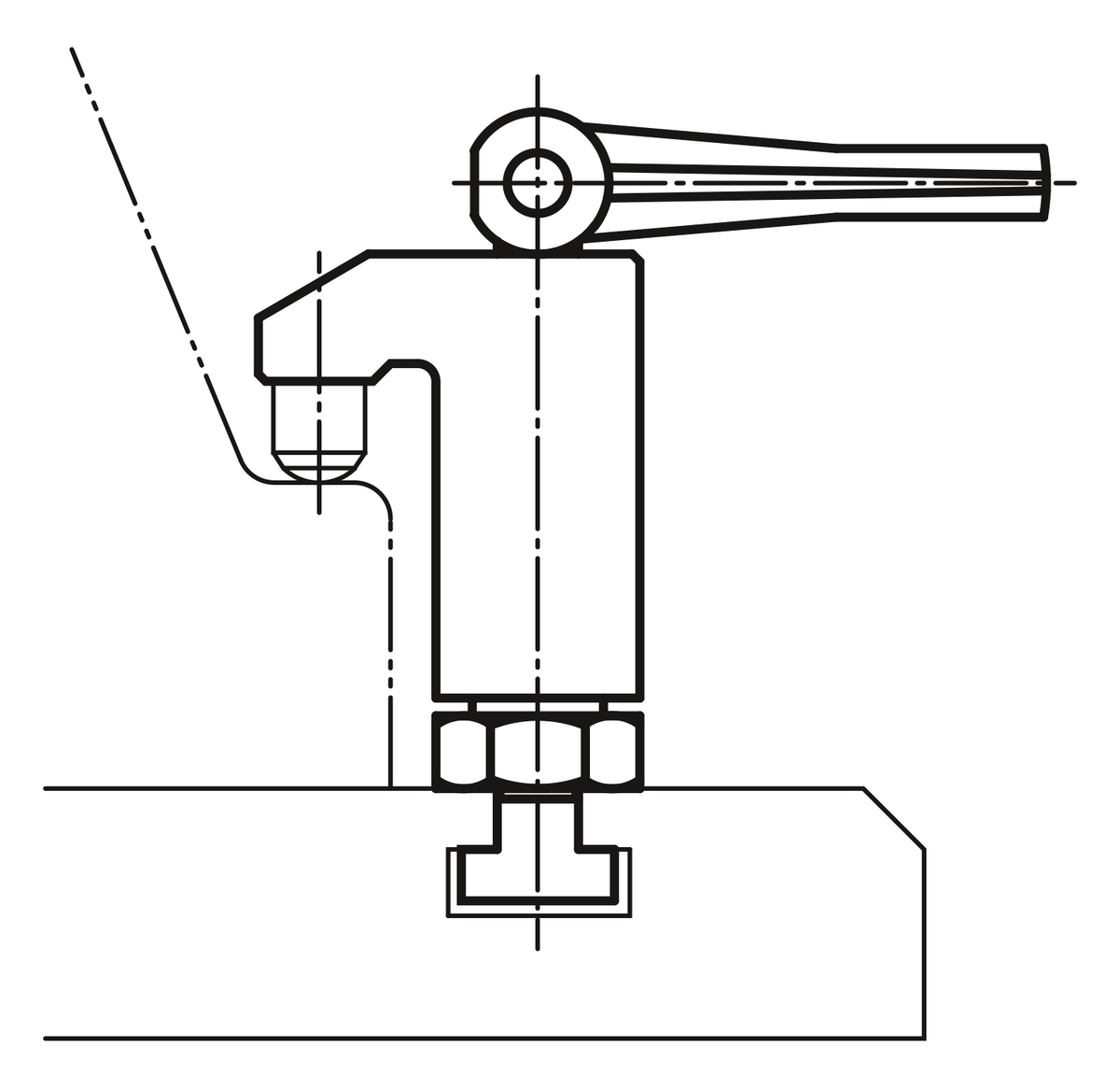 Upínací výšku lze zvětšit pomocí výškových válců K0018, u K1231.12 až K1231.14 a také u K1231.22 až K1231.24, pomocí výkyvných opěrek K0282 zmenšit.
