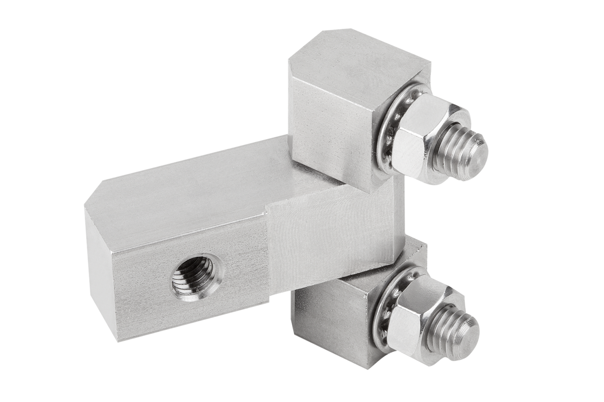 Rohové závěsy s upevňovacími maticemi a prodlouženým středovým dílem pro vnitřní dveře.