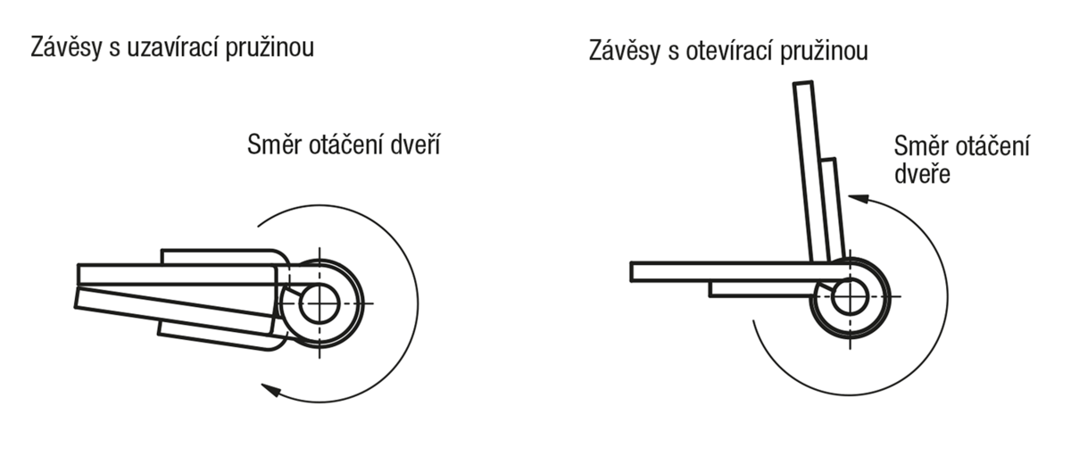 Závěsy jsou vybaveny integrovanou upínací pružinou z oceli. To umožňuje automatické otevírání a zavírání dveří a klapek.