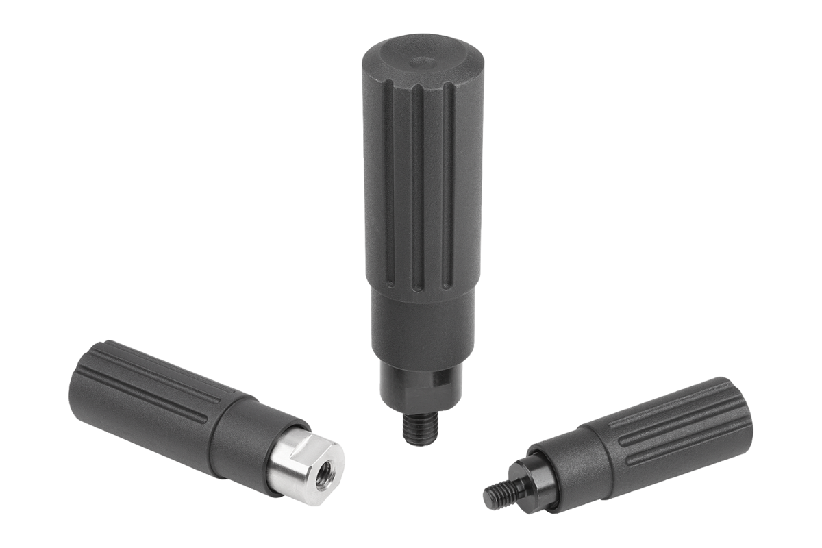 Válcové úchyty, plastové otočné s vnějším závitem