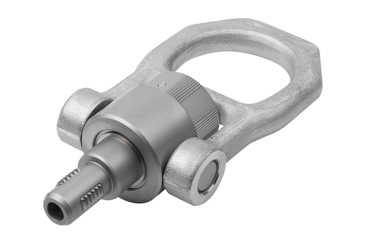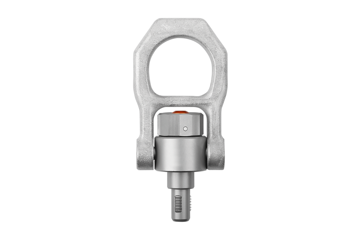 Výkyvné a otočné závěsné oko se při zvedání vždy vyrovná ve směru tahu, aniž by se čep otočil. Bezpečnostní můstek v závěsném oku chrání tlačítko proti nechtěnému uvolnění při přímém tahu.