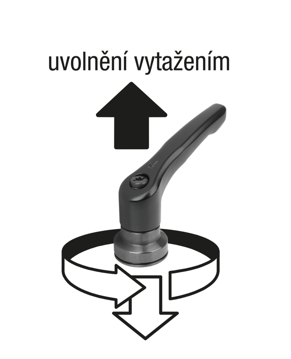 Ovládací úchyt je v neovládaném stavu zaklesnutý ozubeným věncem do závitové vložky. Nadzvednutím ovládacího úchytu jej lze přemístit do jiné polohy a silou pružiny opět zaklesnout do ozubeného věnce.